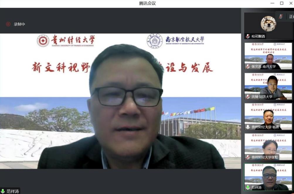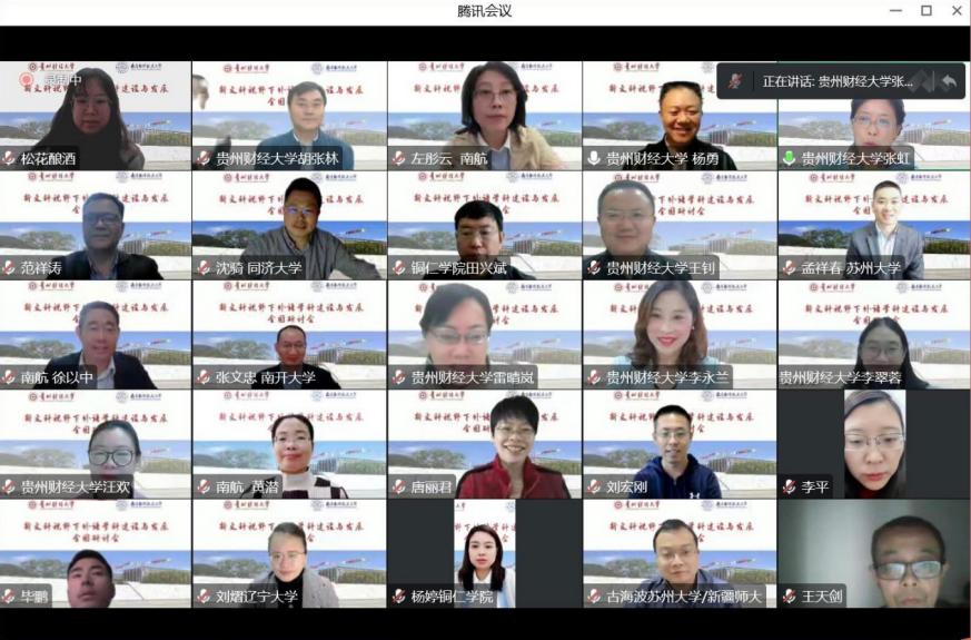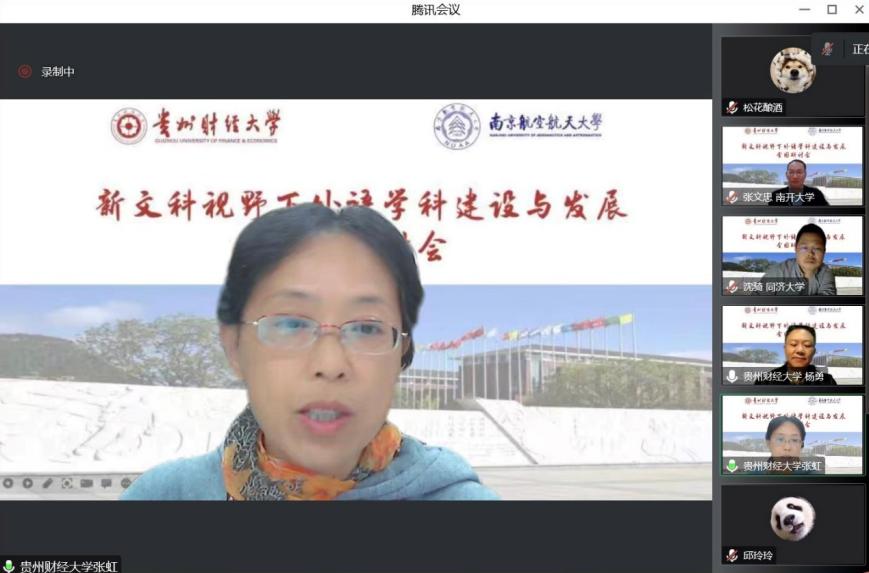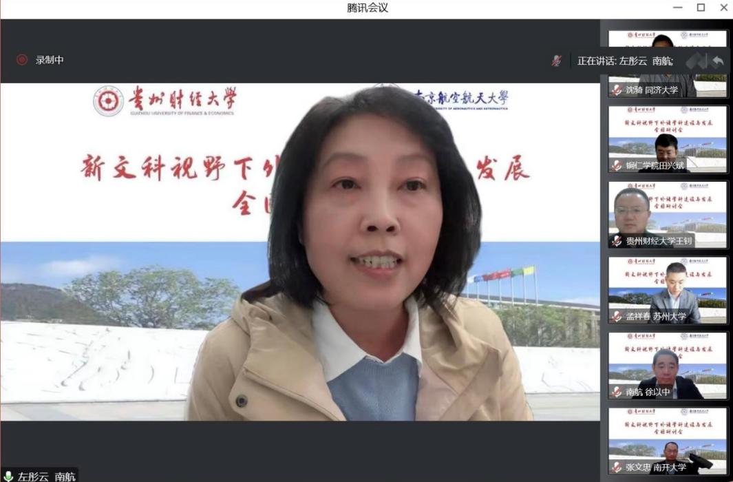 400全讯白菜党委书记左彤云与贵州财经大学外语学院院长张虹一起宣布,贵财外语学院和南航400全讯白菜联合共建虚拟教研室的活动正式启动。左彤云表示,学院将全力支持虚拟教研室的建设,并代表学院欢迎各位专家在疫情后莅临南航指导。