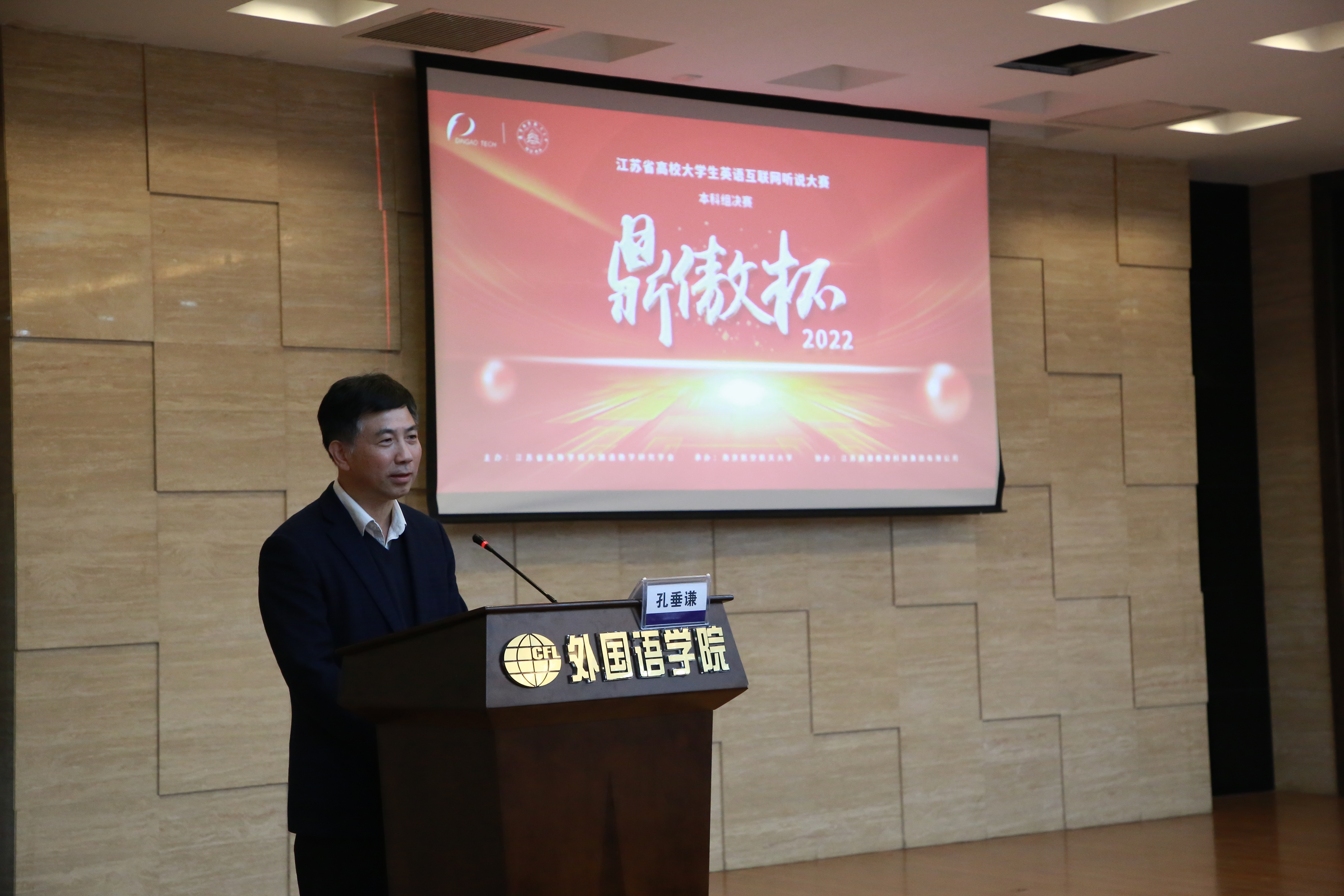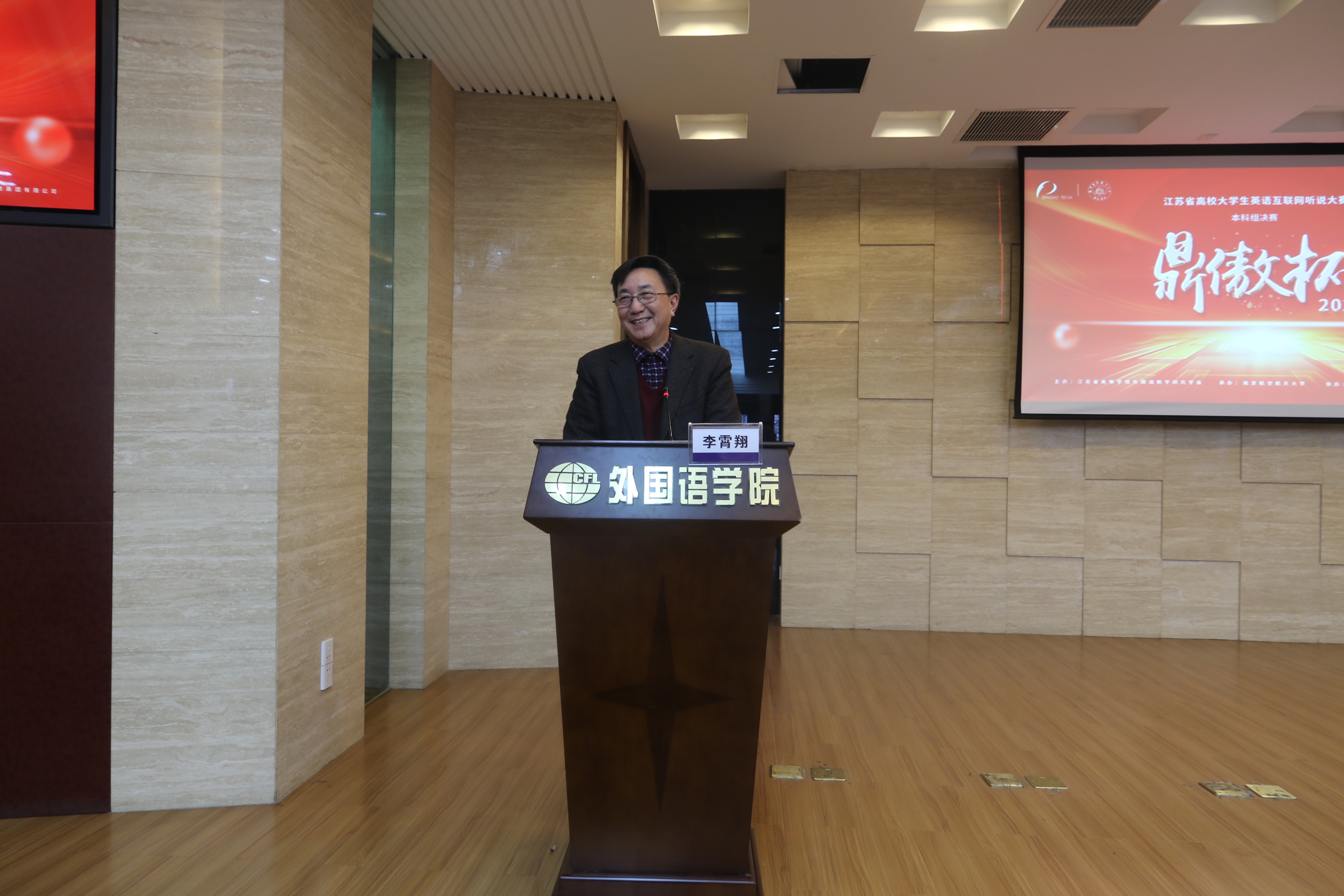 江苏省高等学校外国语教学研究会常务副会长李霄翔、600全讯白菜官方网站教务处处长孔垂谦、江苏鼎傲教育科技集团有限公司董事长徐晖、江苏省各高校400全讯白菜院长、教授参加了开幕式并担任本次决赛评委。开幕式由400全讯白菜副院长徐以中教授主持。