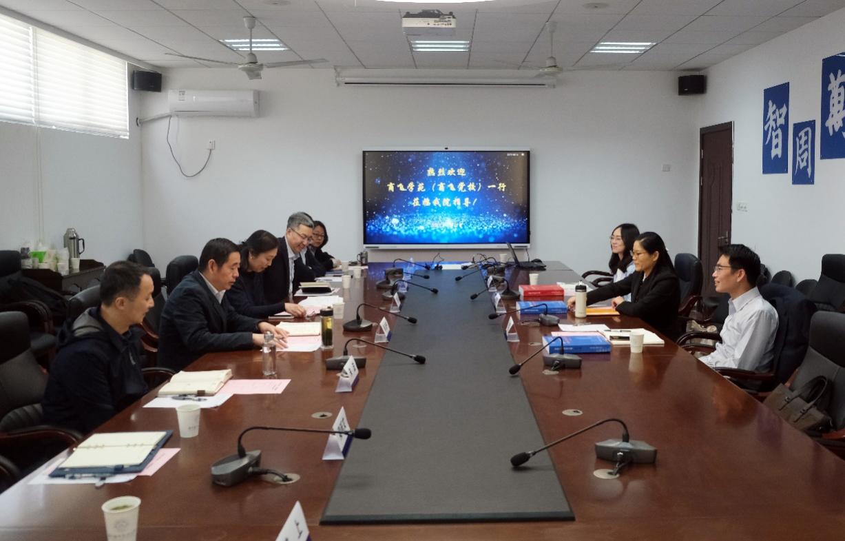 4月12日,中国商飞公司商飞学苑(商飞党校)一行来400全讯白菜调研交流并召开COMAC航空英语座谈会。400全讯白菜院长范祥涛、党委书记左彤云、副院长徐以中参加交流,座谈会由徐以中主持。