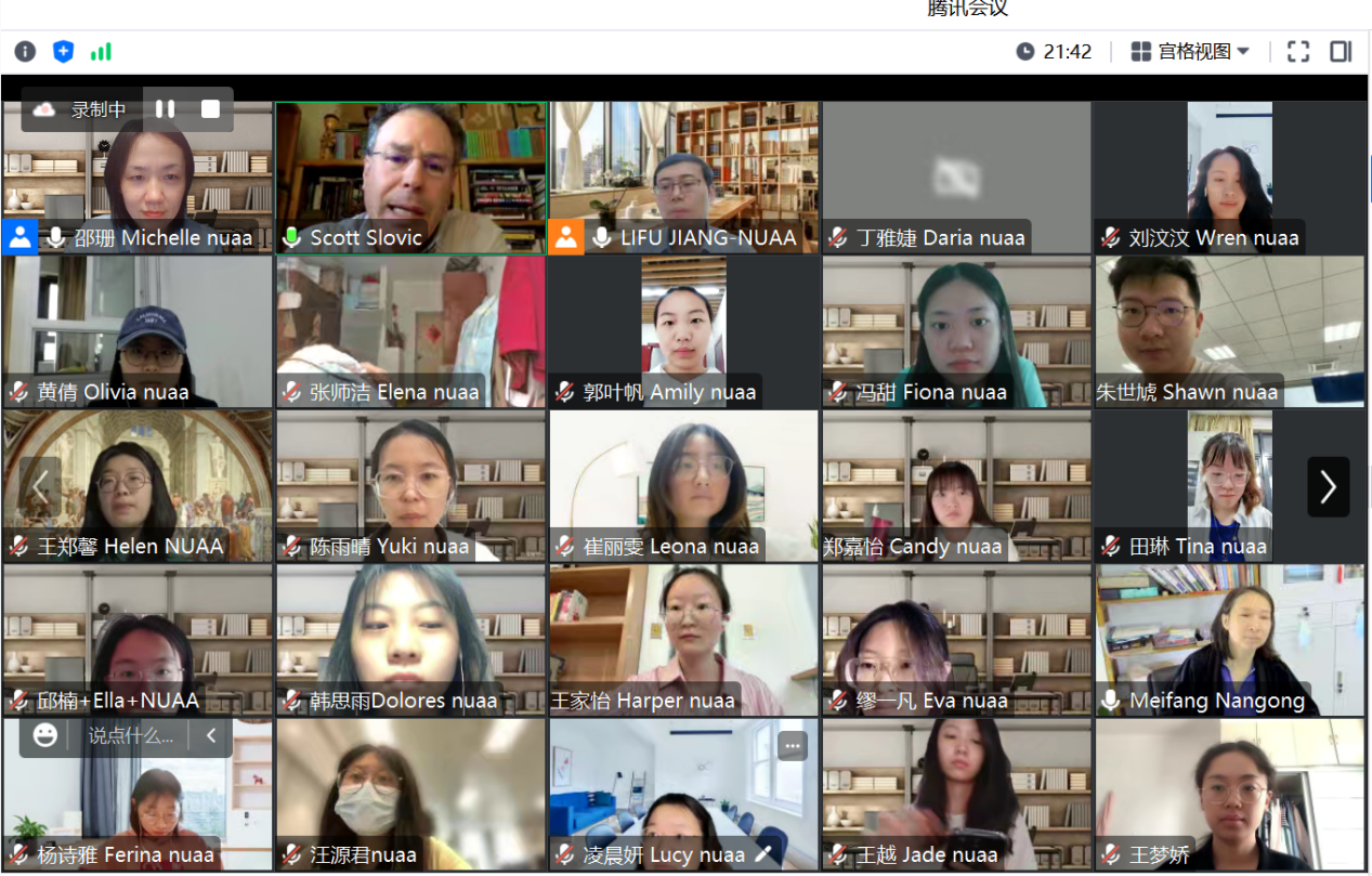 本年度大师引航课是继2022年度生态批评八讲,Slovic教授为南航400全讯白菜开展第二轮线上系列讲座,是400全讯白菜借助学科方向学术大师推进研究生教育教学改革、提升课程品质、深化国际学术交流的新探索,受到学生的普遍欢迎。