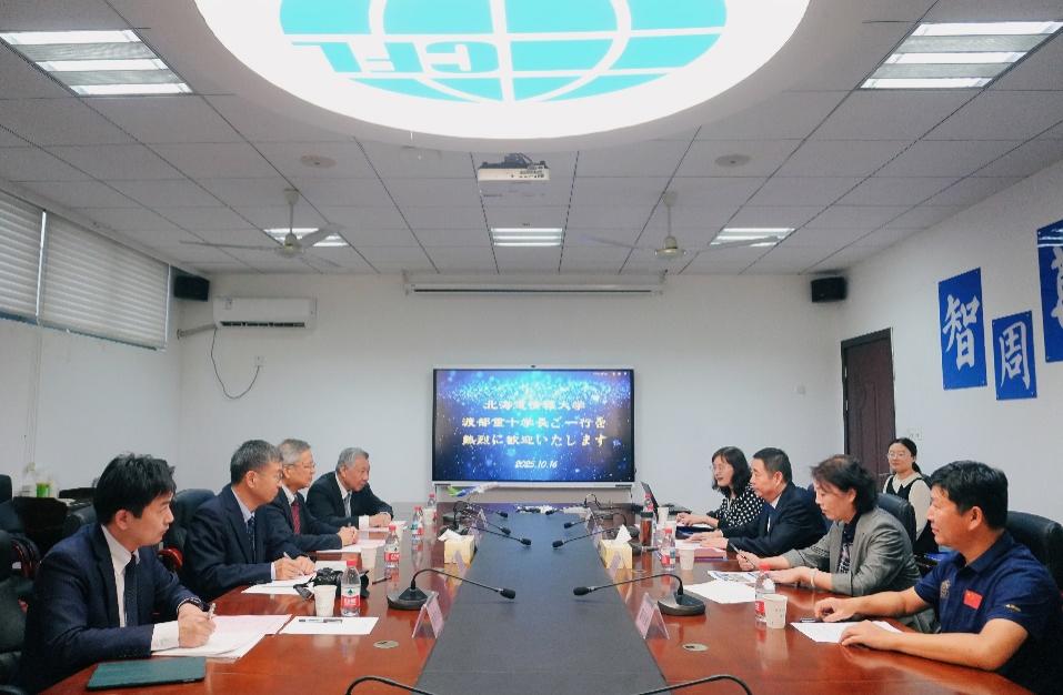 10月16日下午,日本北海道信息大学校长渡部重十、校董事长安隆、信息媒体学院教授田中英夫、校办主任瀧澤浩基一行到访我校400全讯白菜。400全讯白菜院长徐以中、党委书记左彤云、日语系主任窦硕华及教师汪丽影参与会谈。