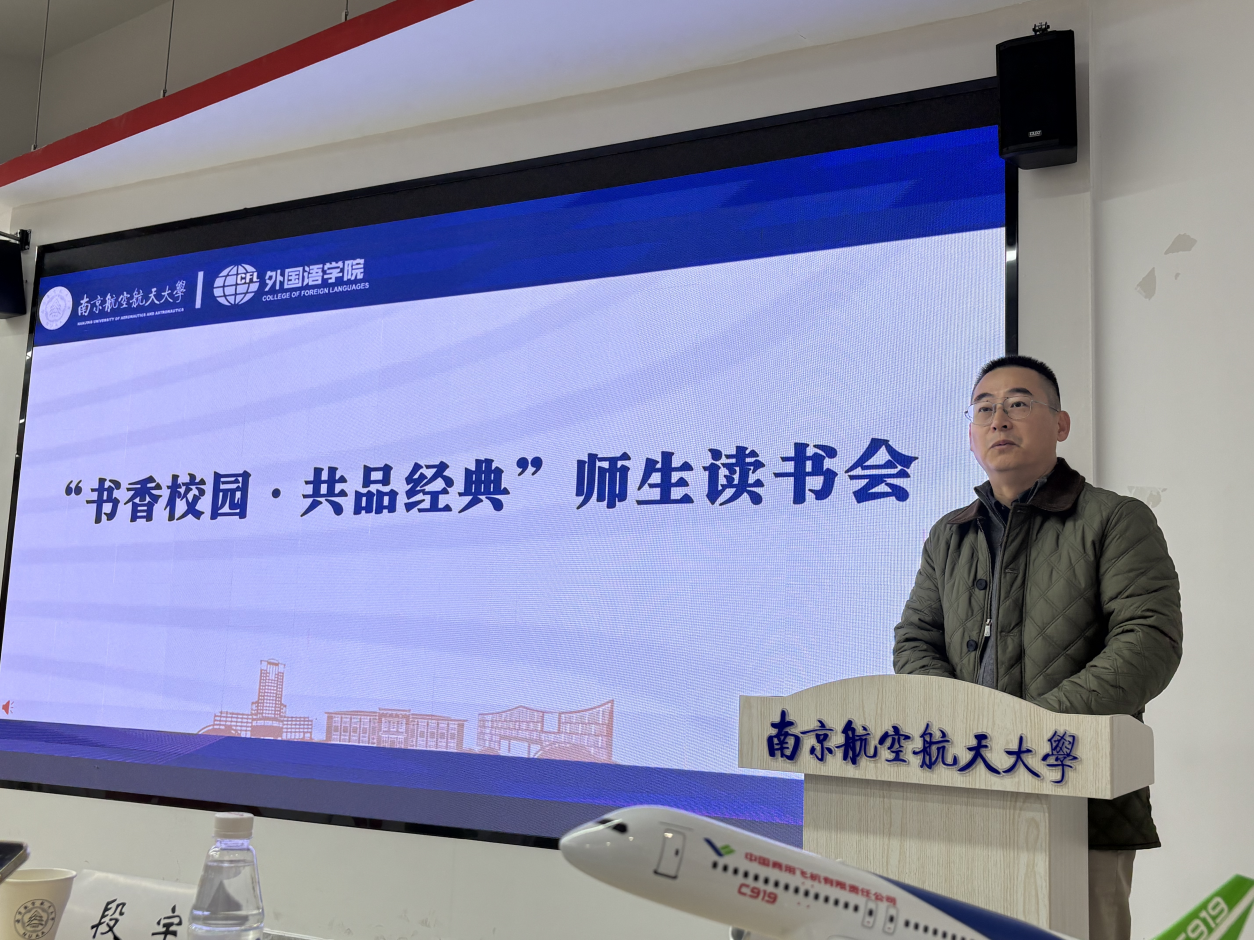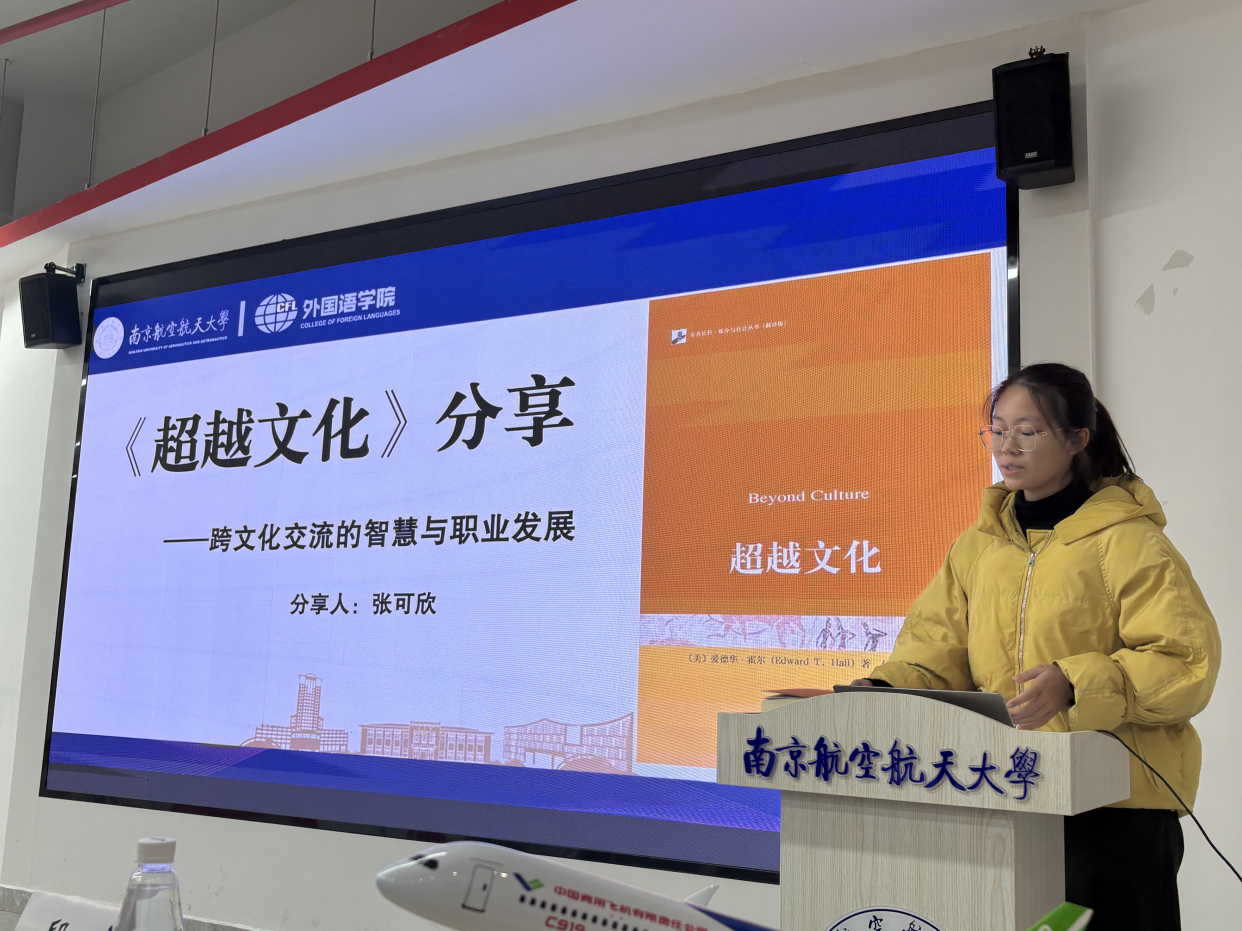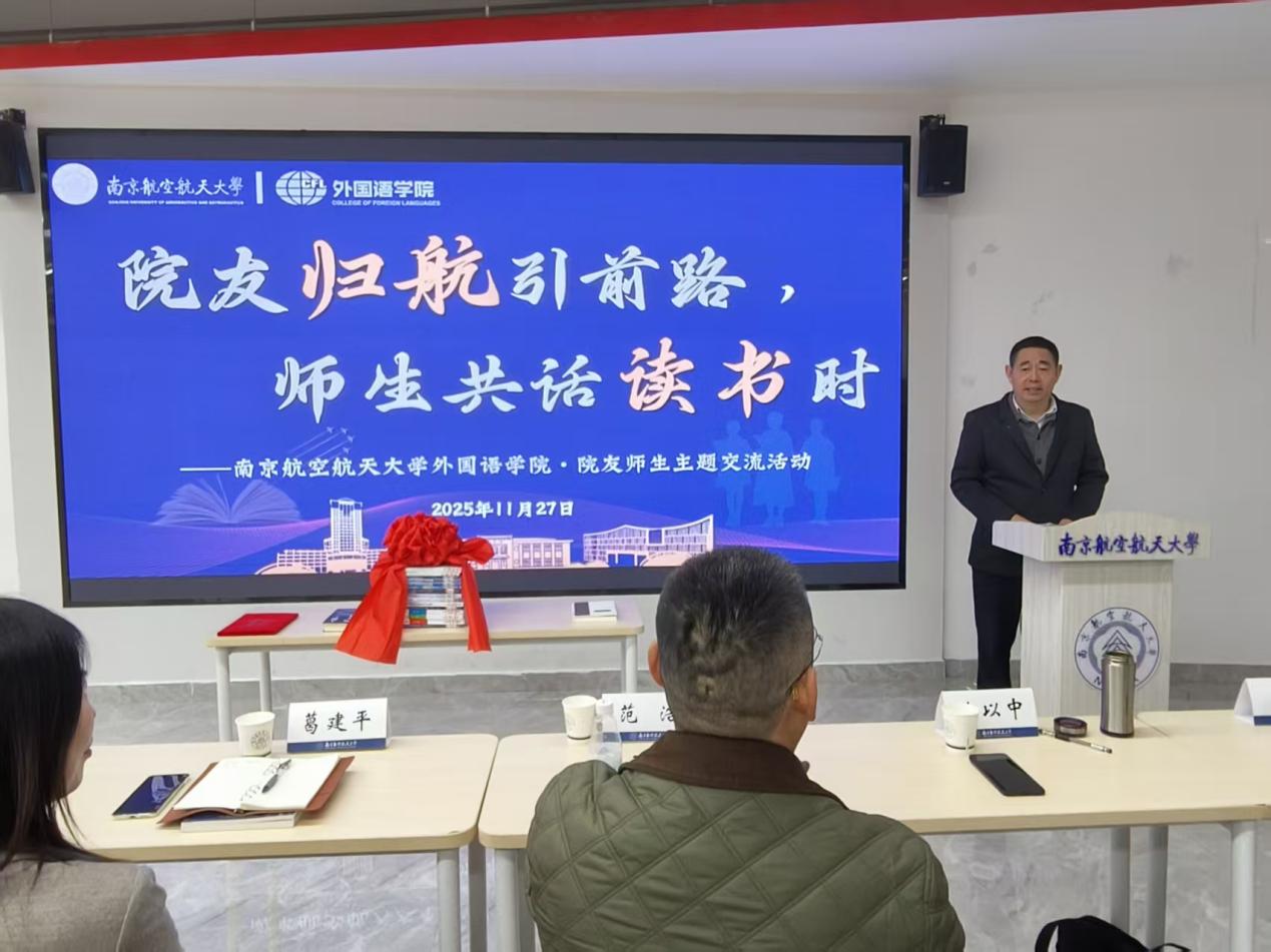 随后,“书香校园·共品经典”师生读书会环节,范浩院友结合学生时代的求学历程与创业路上的实战感悟,强调了“胸怀大志”与“脚踏实地”并重的人生哲学,并在互动环节中与同学们真诚交流,为在座学子带来深刻启发。此外,范浩院友向在座学生推荐了《The CultureMap》一书,希望后辈学子们从中找到一把解锁文化差异、提升跨文化沟通力的钥匙。葛建平院友娓娓道来她与《航空航天概论》的故事以及在出版行业的职业体悟,展现出知识传播者的责任与情怀。两位院友的倾情分享,真挚而充满力量,赢得了全场热烈的掌声。400全讯白菜2025级英语复合创新班的张可欣同学分享了《超越文化》一书的阅读体悟。她从理论框架延伸到现实案例,并结合外语人的职业路径展开深入思考,充分展现了外院学子对文化差异的敏锐感知以及将语言能力转化为跨文化实践的应用潜力。